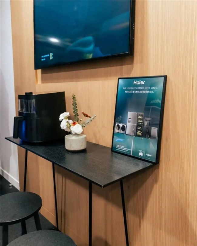 赛事期间,海尔智家在场馆内设置专属VIP观赛区,为嘉宾营造融合优雅设计与赛场激情的沉浸式体验空间。该区域既展现海尔高端、精致、互联的品牌形象,也让现场观众近距离感受智慧科技为生活带来的提升。此外,海尔在巴黎多个核心区域同步展开品牌推广,通过门店主题陈列与城市户外广告联动,向公众传递“精确与设计的融合”理念,进一步增强品牌在国际舞台的认知度与影响力。