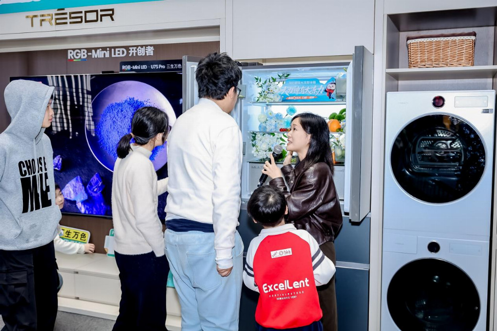 活动现场,海信旗下全品类新品集中亮相、精彩登场,涵盖海信电视、容声冰箱、璀璨高端套系、海信空调、海信洗衣机五大核心品类,精准覆盖家庭观赛、日常居家、品质生活等多元需求。其中,海信电视U7S Pro作为世界杯定制款产品,搭载先进的显示技术,带来清晰流畅的观赛视觉体验,搭配AI全景世界杯功能,支持赛前AI预测、赛中球员识别等专属服务,让消费者在家就能享受沉浸式观赛乐趣;容声“大冰象”冰箱凭借超大冷冻空间和优质保鲜技术,完美适配世界杯期间家庭囤货需求,为观赛后勤提供坚实保障;璀璨高端套系则以简约大气的设计、智能便捷的操作,融合AI真空磁场保鲜、智能控温等核心技术,打造高端品质居家生活场景;海信空调A6w系列、海信洗衣机四筒系列也同步亮相,以强大的产品性能和人性化设计,满足消费者多样化的居家需求。