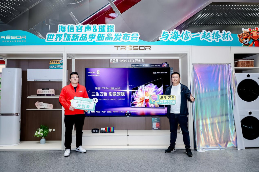 近日,海信容声&璀璨世界杯新品季发布会在长沙京东MALL中厅盛大启幕、圆满落幕。本次活动以2026世界杯为核心主题,依托海信作为世界杯全球官方赞助商的强大品牌优势,聚焦高端家电新品发布与沉浸式消费体验,汇聚海信旗下全品类核心产品,为长沙市民带来一场集科技、体育、福利于一体的家电消费盛宴,活动全程人气爆棚,得到现场消费者的广泛好评与热烈响应。