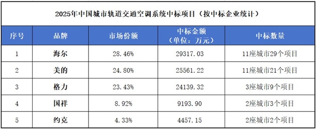 2025城轨空调:美的格力贴身肉搏,海尔成功卫冕